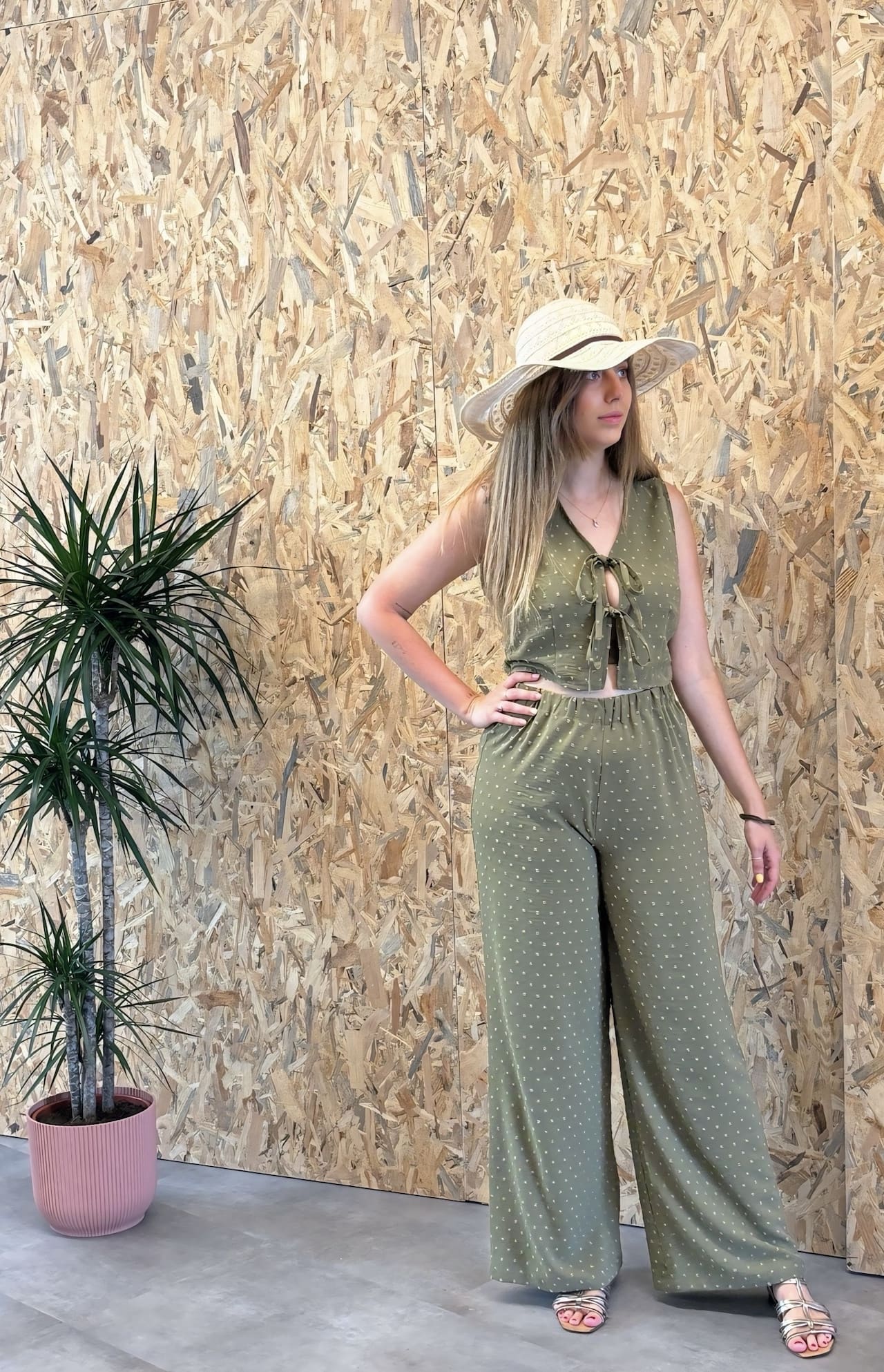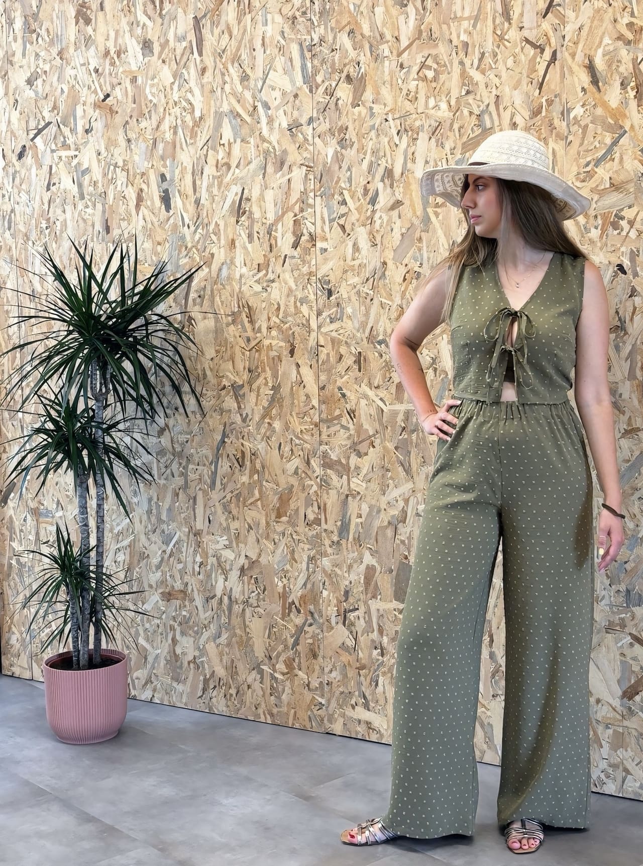 Su escote en «V» y los lazos frontales permiten ajustar la prenda a tu gusto, creando un estilo relajado y fresco ideal para el verano.